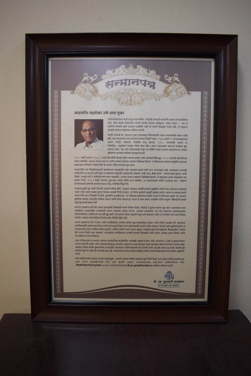 With the increasing business, we should not forget our responsibilities towards our society which has helped us grow to this level, this he could learn looking at Mr. DSK. Dada was awarded by DSK “ Self Made Man” and “ Think Pure” award by the name of Daji Kaka Gadgil and many more such awards which are listed in his bouquet of achievements and appreciations. Because of this realization he started his own “Dada Gujar Foundation” whose administration is looked after by Maharashtra Bank Trustee Company. With the help of this foundation, he introduced well equipped computer labs at Saraswati Mandir, Bajirao road, Pune. To encourage better education for night college, capable and well educated teachers are appointed whose honorary compensation is given by this foundation. Lion’s Club Sarasbagh Dialysis Center is supported financially from time to time by this foundation. Financial support for a marriages of a poor girl, for better education of poor and providing help in medical emergencies for the senior citizens, such programs are undertaken by Dada Gujar foundation.